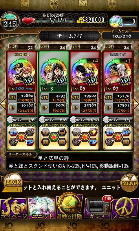 Almost two years playing JoJo Stardust Shooters, I got lots of SSRs already but here it is, finally I got all my dear (painful) ships complete as my team. Though they're probably won't make it as my best team (because my main team has stronger medals), I definitely gonna level them up until max level. JoseCae has reached level 80 too now. I need to level up AbuPol too. If only I'm diligent enough to farm the red medal items for evolving... I realized the most medal I have are red medals, which is why I ran out of red, green and white medal items fast (it combines some different elements).