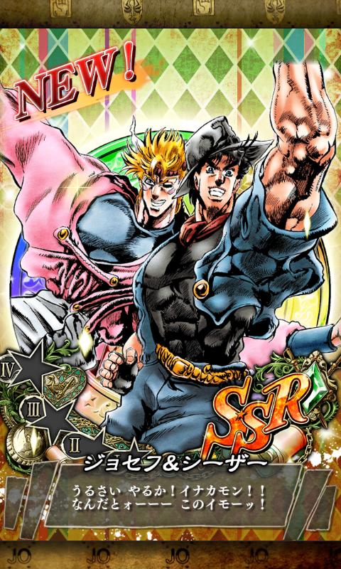 Currently, since part 4 anime is out, the game is also updated to version 4. They added a special anime quest section unlike when they did it for part 3 anime which was still in the normal special quest section. It's May already, they're gonna update again soon for the anime quest feature. And now there's Golden Week campaign. Though I'm not so interested in it eventhough the SP point up quests are from the anime quest which are always open, unlike the usual SP events that have SP point up quests only for an hour each day. It's because the SSR medals aren't so promising. I might go so far up to 5000 points for SSR DIO. Besides that, GW campaign is giving 50 daiyas (10 days, 5 daiyas each), SSR Yukako is added to the gacha and there's also 7+2 gacha and 3x testing gacha. I don't really need any more SSR (I got my ships duh www), but I won't hate to get more SSR Tenmei, Joseph-jiichan's gangan tatakau and Zeppeli-san's power!!, also I'm waiting for Rohan-sensei to join the bandwagon.